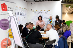 avec Ophélie Raveaud, chargée de mission nationale, cheffe de projet FAMILIRE à l’ANLCI et Pascaline Mangin, responsable du pôle Publics et médiations au Salon du livre et de la presse jeunesse en Seine-Saint-Denis
