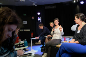 avec Axelle Caillat et Ève Perrin, lectrices à À livre ouvert et Sara Mammad de Beauregart, chargée des publics éloignés – Lecture Justice et Lauriane Mordellet, chargée de la mission régionale Culture Justice et Livre à Livre et Lecture en Bretagne