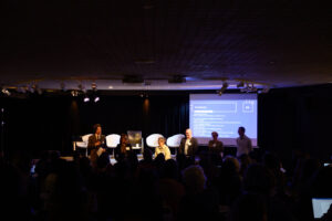 avec Amandine Ronzy, cheffe de projet à l’ANPEA, Sophie Blain, directrice des Doigts qui rêvent et membre des Éditeurs Atypiques et Marc Nonnenmacher, président de LISY
