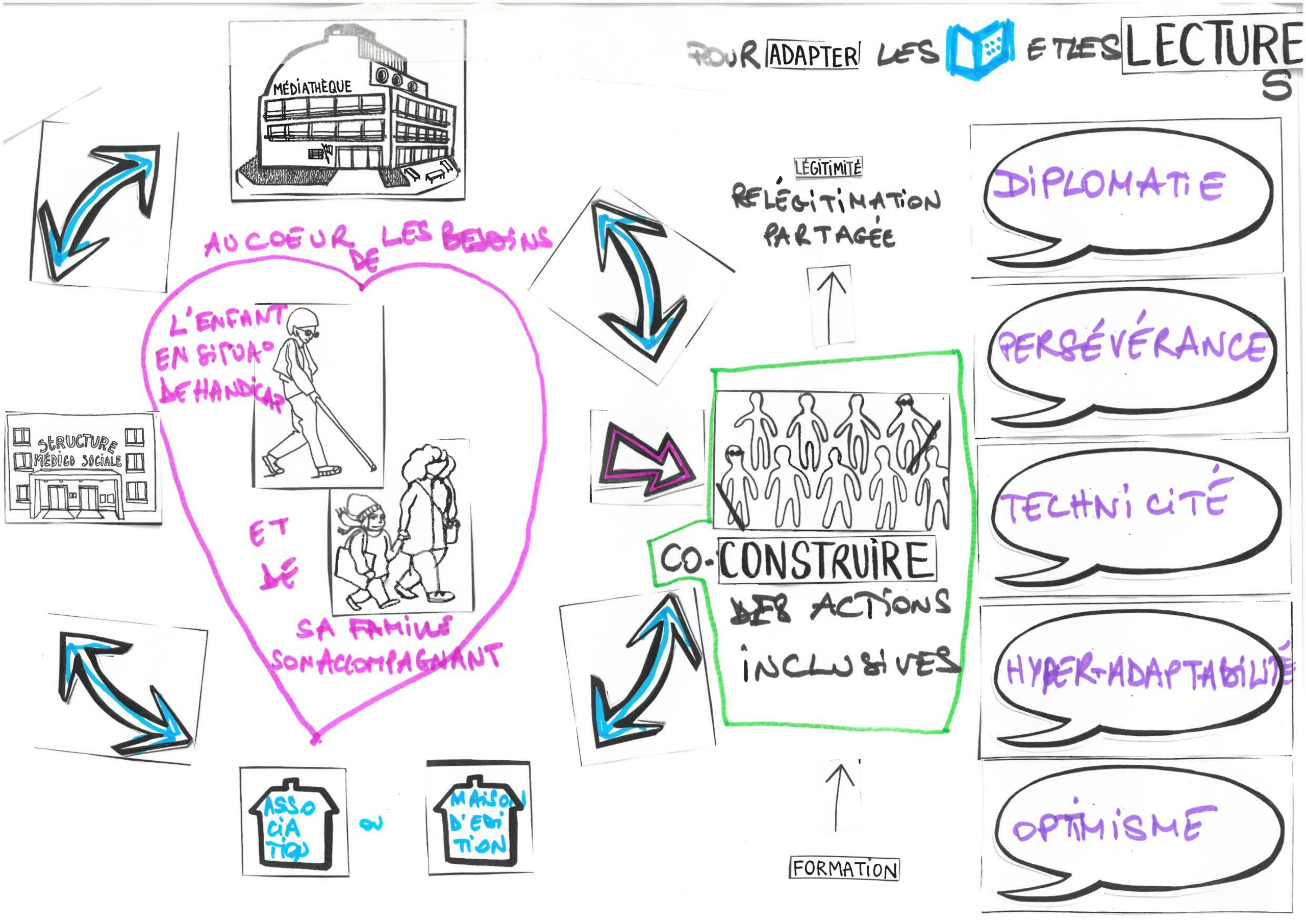 Adapter des livres signifie travailler sur le fond et sur la forme du livre à rendre accessible (lisible et compréhensible) aux personnes en situation de handicap. Adapter des livres c’est aussi adapter nos lectures : quelles médiations ? pour quel public ? avec quels partenaires ? quels objectifs ? Permettre l’accès à la lecture en toute autonomie ?