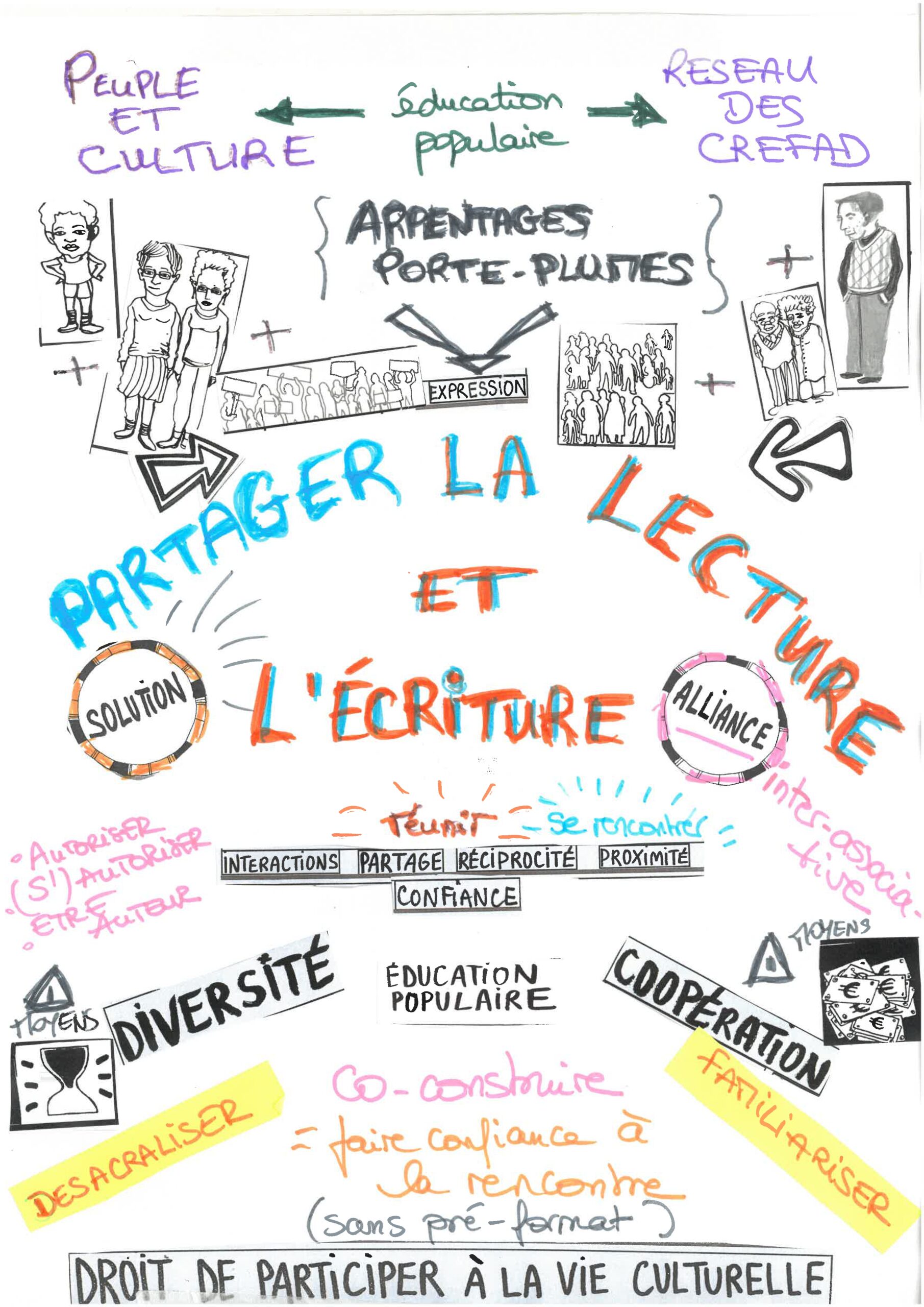 À partir des conclusions des ateliers régionaux, organisés de janvier à septembre 2025 autour de la nouvelle Fresque de L’Alliance pour la lecture réalisée avec l’illustratrice tout terrain Carole Chaix, de leurs expériences et actions de terrain, des membres de L’Alliance et d’autres spécialistes de ces questions ont échangé sur les constatations, solutions, conditions et propositions d’évolution pour que la lecture soit facteur d’inclusion, de cohésion et d’émancipation.